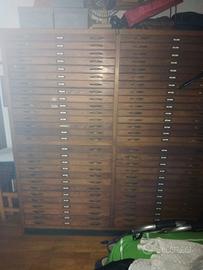 Cassettiera da disegno per pittori o architetti con 56 cassetti portafogli. H.180 L.1.30 p.60