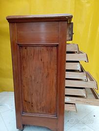 ANTICA CASSETTIERA IN NOCE MASSELLO. ERA UTILIZZATA IN UNA VECCHIA MERCERIA. OTTO CASSETTINI PIÙ UNO GRANDE. MISURE cm 84x36x35. CONDIZIONI OTTIME.