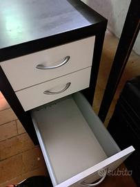 Cassettiera da ufficio, con ruote. Tre cassetti molto ampi. Altezza 70cm, profondità 50 cm e larghezza 36.5cm. Ottime condizioni