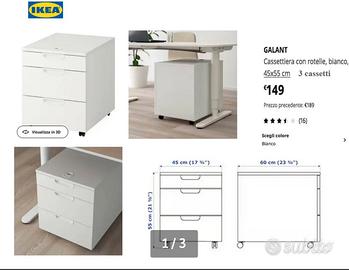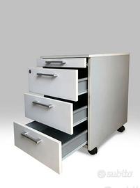 Cassettiera da scrivania, 3 cassetti +1 , usata ma in ottimo stato, Con rotelle ma sprovvista di chiavi. Da ritirare sul posto perché impossibile da spedire. Disponibilità di ancora 2 cassettiere.