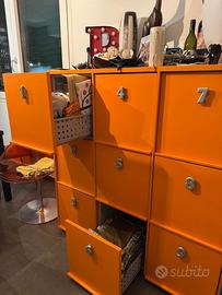 Cassettiera colorata di design, H125 L122 L51 cm in legno con 9 cassetti molto spaziosi con struttura in alluminio e numeri in metallo opaco