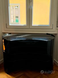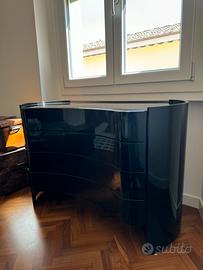Cassettiera design giapponese per Gavina fine anni70 legno laccato nero curvo