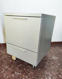Cassettiera casa/ufficio in legno verniciato argento con ruote, 2 cassetti. Lunghezza cm 48, larghezza cm 45, altezza cm 62