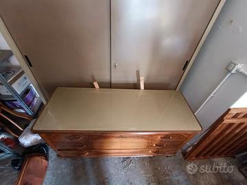 Cassettiera composta da 3 cassetti, lastra di vetro sul ripiano superiore. Ottime condizioni. misure h 82cm, 52x142 cm