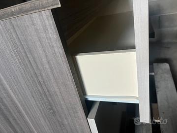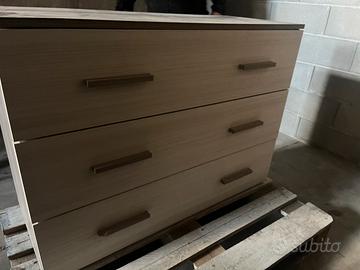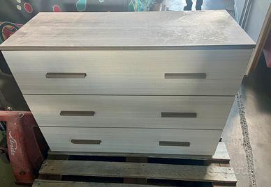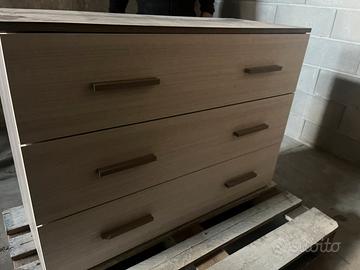 Vendo bellissima cassettiera moderna a 3 cassetti, nuova e mai utilizzata. Il mobile presenta un elegante contrasto cromatico tra la struttura esterna scura (effetto venatura legno) e i frontali dei cassetti più chiari. Caratteristiche principali: • Design: Linee minimali con maniglie a listello coordinate. • Capienza: 3 ampi cassetti con guide scorrevoli fluide. • Condizioni: Nuova, perfetta in ogni dettaglio (ancora su pedana di trasporto). • Stile: Ideale per camera da letto, ufficio o zona giorno.