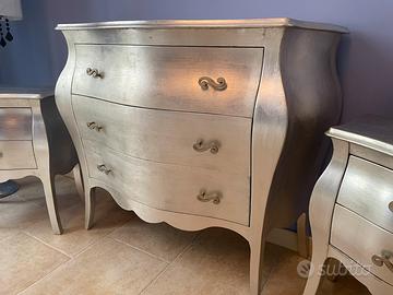 Cassettiera e Comodini foglia argento