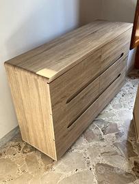 come da foto, vendo set composto da cassettiera e comodini, praticamente nuovi. Prezzo cassettiera €110, prezzo comodini €50 coppia. Disponibilità di 3 cassettiere e 4 comodini il colore legno piu comodini in bianco come da foto.