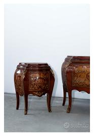 Vendo Cassettiera e 2 comodini in legno, stile barocco moderno. Legno lavorato e intagliato con decorazioni applicate in foglia d’oro e vernice lucida. Ritiro a Pero (Milano)
