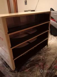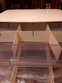 In plastica con piedini in metallo. Dimensioni 55/46/40 l/a/p 4 Cassetti a 9 scomparti rettangolari con divisori rimovibili