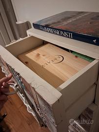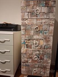 cassettiera etnica acquistata in negozio "Novità Home" di Brugnato. intarsiata di legno massello di mango. pezzo unico non si smonta.
