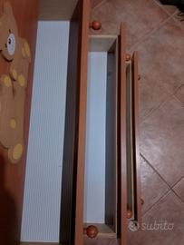 cassettiera fasciatoio azur usata ma ottime condizioni, con unico segno di usura il graffio fotografato sopra e qualche graffietto nella parte in cui era attaccata al muro ma niente di visibile, ha le ruote facilissima da spostare