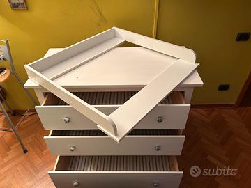 Le dimensioni della cassettiera sono 108cm x 96cm x 50cm. Com fasciatoio le dimensioni in profondità aumentano.Prezzo trattabile. Vendo anche separatamente