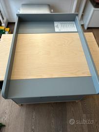 Comoda e pratica: 2 cassetti + vano a giorno. Il piano fasciatoio si rimuove facilmente, la cassettiera resta perfetta anche come mobile normale per la cameretta.