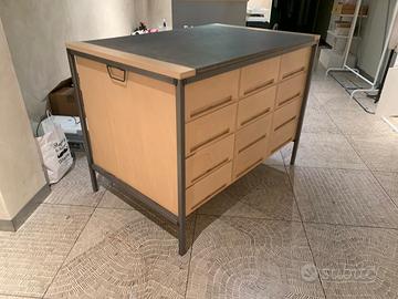 TAVOLO DA 1200X800MM COMPLETO DI CASSETTIERA BIFACCIALE IN MULTISTRATO DI PIOPPO SCURO DOTATO DI TOP E NR.24 CASSETTI REMOVIBILI PER 'INTIMO"' CON RIVESTIMENTO IN EKONABUK