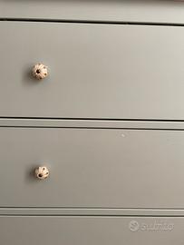 Cassettiera modello Hemnes di Ikea con 3 cassetti Riverniciata color verde salvia e sostituiti i pomelli. La vernice è leggrmente sbeccata in alcuni punto visibili nelle foto ma e in perfette condizioni.