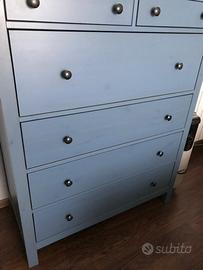 IKEA serie HEMMES azzurra Cassettiera ikea con 6 cassetti, usata ma bene mantenuta Questo colore è ormai fuori produzione ma molto bella Questa serie è quella in legno , non la classica fatta di cartone e poi foderata, vendo per trasloco