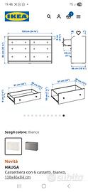 Cassettiera ikea Hauga con 6 cassetti molto capienti. In ottimo stato. Comprata giugno 2024. Vendo per cambio cameretta Allego foto con prezzo attuale e misure dettagliate. Si consegna gia smontata. Solo per persone di Piacenza e provincia