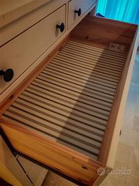 Cassettiera IKEA HEMNES in pino massiccio con 6 cassetti, mordente bianco, misure 108x131 cm, già montata. Piccoli segni di usura esterni come da foto, per il resto perfetta. Il prezzo del prodotto nuovo da sito IKEA è di 309,00 euro, vendo a 140. Ritiro a Bari centro, trasporto a cura dell'acquirente.
