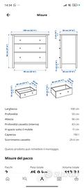 Cassettiera Ikea modello Hemnes 3 cassetti Misure in foto colore mordente bianco Ben tenuta