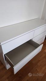 Cassettiera Ikea Malm bianca con 6 ampi cassetti. Misure: 160x48x78h Usata ma in buonissime condizioni. Ci sono 2 o 3 piccoli difetti (foto 2) che non ne compromettono l'uso. Ritiro a mano a Firenze