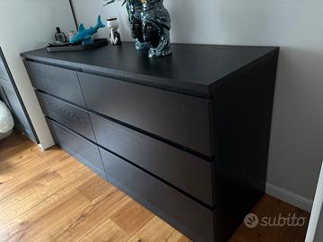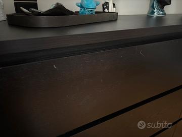 Cassettiera IKEA Malm, nero/marrone. Ha qualche graffio come da foto, ma tenuta davvero bene. I cassetti sono perfettamente funzionanti. A malincuore dobbiamo venderla a causa di necessità di spazio. Dimensioni: 160x78x48 Cassetti: 72x43x16 RITIRO SOLO A MILANO.