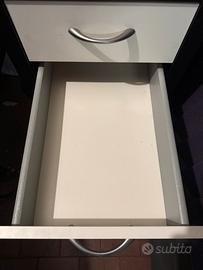 Vendo cassettiera Ikea nera in legno con rotelle e 3 cassetti. Misure: h 69,5 cm, l 37 cm, p 50 cm