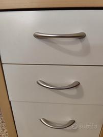 Cassettiera Ikea 3 cassetti bianca con rifinitura effetto legno betulla, molto robusta con possibilità di aggiungere comode rotelle. Misura P 50x L 36.5x H 63.