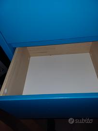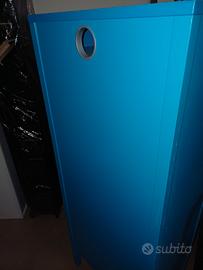 Cassettiera azzurro intenso Ikea,ottimo stato,40x45x125,ideale per il bagno,foro posteriore per cavi Phone e piastra.