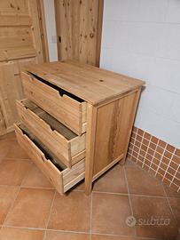 Cassettiera in abete naturale a tre cassetti IKEA. Ottimo stato montata. Altezza 86 cm Profondita'52cm Larghezza 89 cm
