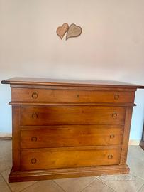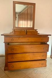 Vendo cassettiera in arte povera, con quattro cassetti. Completa di specchiera contente due piccoli cassetti. Il mobile è in buono stato con qualche segno di usura. Possibilità di acquistare solo la cassettiera o solo la specchiera. Le misure della cassettiera sono 52x126x91. L'altezza della specchiera è di 91 cm.