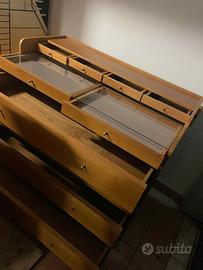 cassettiera in ciliegio con casettini portagioielli e 4 cassetti.dimensioni larghezza 105 profondità 55 altezza 93 compreso le ruote