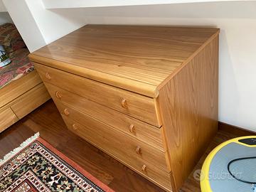 CASSETTIERA in legno, realizzata in legno con venatura naturale chiara, 4 cassetti capienti con maniglie in legno tonde. Buona condizioni