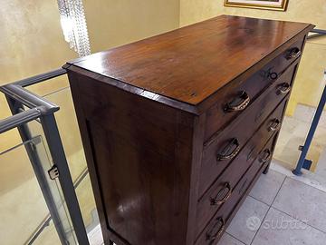 Vendo per cambio arredamento cassettiera antica da fare trattamento anti tarlo. 4 ampi cassetti, colore marrone. Misure: altezza 100; larghezza 51; lunghezza 115