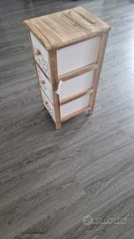 cassettiera in legno nuova con cartellino. 3 cassetti con disegni floreali f.to 26x32x63h.