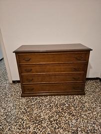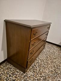 Si tratta di unacassettiera in legno massellocon maniglie in ottone in unostile classico o vintage. Le sue caratteristiche, come le maniglie curve e la cornice modanata attorno ai cassetti, suggeriscono un design tradizionale che potrebbe risalire a diversi decenni fa, o essere una riproduzione moderna in stile.