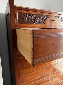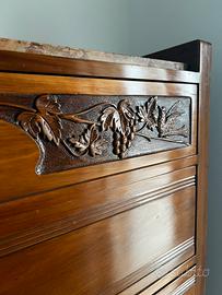 Cassettiera di pregio in Legno massello, con intarsi. Piano superiore in marmo. Cassetti molto capienti.