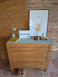 Cassettiera/comò in legno massello interamente restaurata, perfetta per la cameretta di un bambino, la camera da letto matrimoniale o un ingresso elegante. Il mobile è stato trattato (antitarlo) e protetto con una vernice trasparente opaca per garantirne la durata e la bellezza nel tempo. Le maniglie sono nuove. La struttura è solida e robusta, i quattro cassetti scorrono fluidamente e offrono abbondante spazio contenitivo. Dimensioni: lunghezza: 107 altezza: 97 profondità: 46,5 Seguimi su Un gatto nel cassetto (Instagram/Facebook).