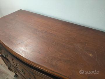 commode in noce altezza 84, larghezza 99, profondità massima 45 in buone condizioni ma con segni sul piano