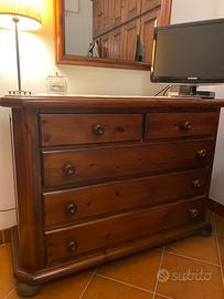 Vendo cassettiera in legno pino massello con 4 cassetti anni 80 e specchio della stessa linea. Mobile molto solido e robusto, in ottime condizioni strutturali. Presenta solo normali segni del tempo e qualche piccola ammaccatura, ma è stabile e perfettamente funzionale. Prezzo: € 150 trattabili Ritiro a mano zona Pinarella di Cervia