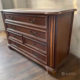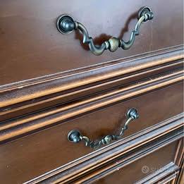 Vendo cassettiera in legno stile classico, colore noce, con più cassetti capienti.