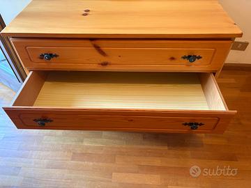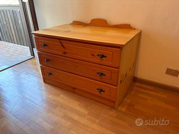 Cassettiera in pino massello stile rustico con tre cassetti, misure 1m x 59 cm, altezza 63,5cm