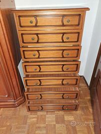 Vendesi cassettiera in stile arte povera colore noce, dimensioni LxHxP 77x122x40. Composta da 7 cassetti con pomelli