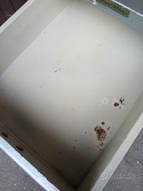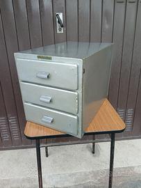 Cassettiera industriale anni 50/60 , in metallo , larghezza 39 , altezza 43 , profondità 62 .