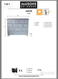 Vendo cassettiera Jaipur originale Maison du Monde, mobile di pregio e grande impatto estetico.