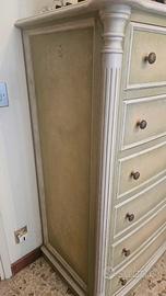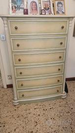 Cassettiera robusta laccata verde e bianco panna a sei cassetti. dim. 110 x 70 cm.