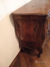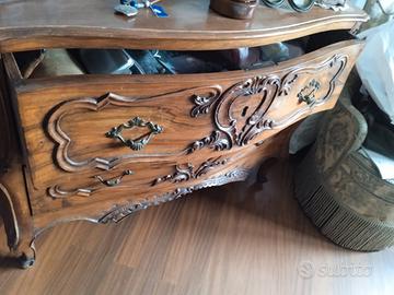 cassettiera legno operato con 2 cassetti, maniglie cassetti metallo. Dimensioni 97x38x82 h cm. Lato destro superiore rovinato come foto. Ritiro in loco.