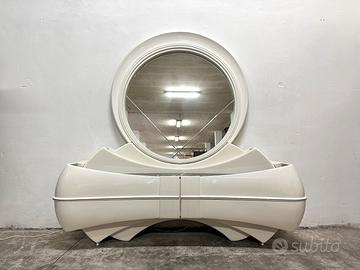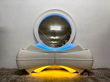 Struttura in legno laccato bianco e fibra di vetro, piano in marmo nero e luci a due colori per creare un effetto straordinario al buio, ottime condizioni.