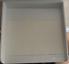 Vendiamo la nostra cassettiera Malm con tre cassetti e piano fasciatoio. La parte superiore della cassettiera si è aperta un po' a causa dell'acqua. La cassettiera costa 99 euro nuova e il fasciatoio 60 euro. Vorremmo 80€. Collezionista di se stesso.