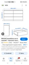 Cassettiera Malm Ikea, ottimo stato, 6 cassetti, misura in foto