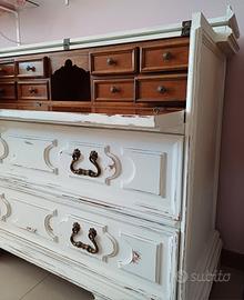 Cassettiera restaurata in stile shabby . Misure : larghezza 120 cm , profondità 50 cm, altezza 93 cm.